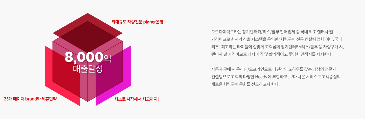 1.장기렌터카, 리스, 할부 등 견적상담 2. 서비스 제공에 관한 계약 이행 3. 회원 관리 4. 광고, 이벤트 및 프로모션 5. 고충처리 |