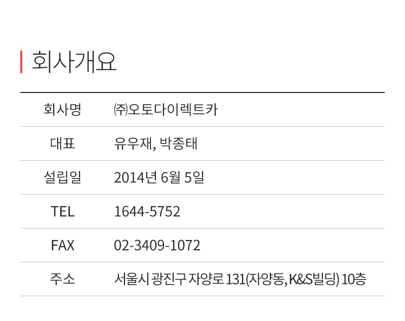 ※ ㈜ 오토다이렉트카는 고객들에게 보다 다양한 정보를 제공하고, 서비스의 질을 향상시키기 위하여 당사의 비즈니스 파트너에게 본 활용동의서에 동의한 회원의 개인정보를 제공합니다. 개인정보 제 3자 마케팅활용동의서에 동의한 고객 정보만 제공되며, 제공된 정보는 명시된 이용목적을 벗어나 이용되지 않고, 개인정보 유출 등 사고가 일어나지 않도록 철저한 보안이 이루어지도록 노력합니다.