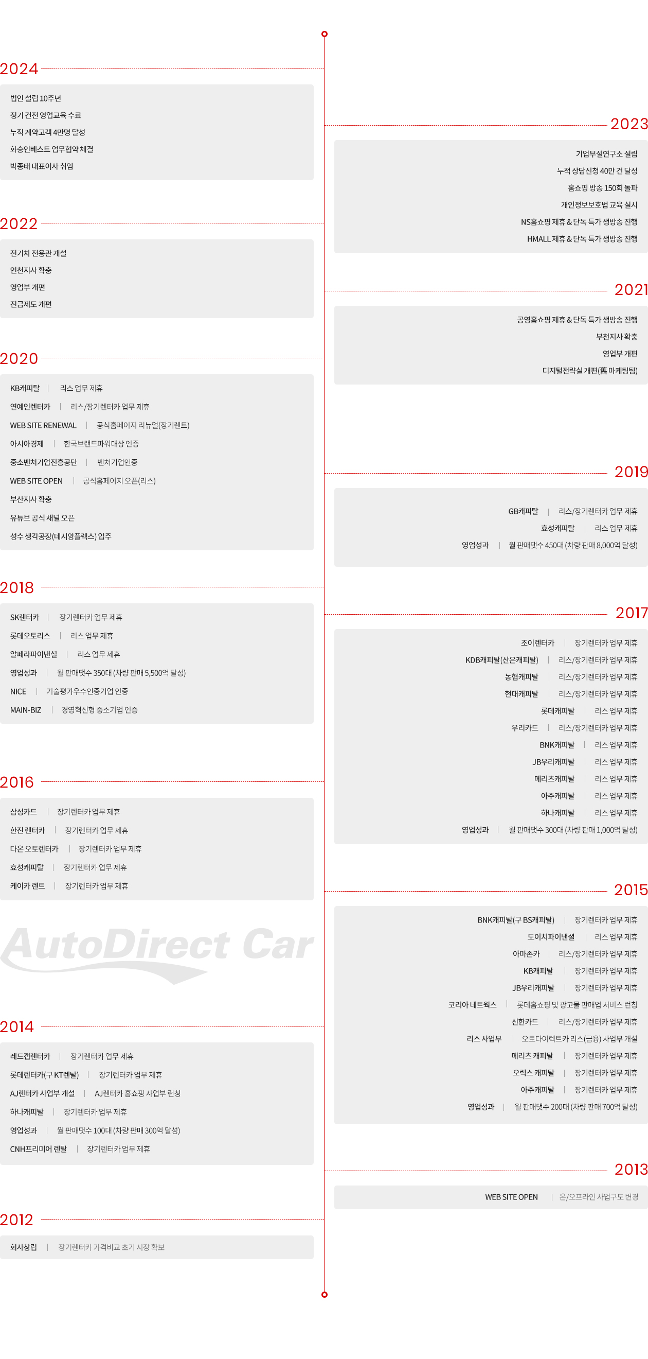 | 레드캡, 농협캐피탈(렌트), 농협캐피탈(리스), 나우카, 지모터스, 롯데렌터카, 롯데캐피탈,롯데오토리스, 메리츠캐피탈, 미래에셋캐피탈, 삼성카드, 신한카드, 아마존카, 아주캐피탈, 알페라, 오릭스, 우리카드, 조이렌트카, 하나캐피탈, 하모니렌트카, 한진렌터카, 현대캐피탈, 효성캐피탈, AJ렌터카, BNK캐피탈, CNH프리미어렌탈, DGB캐피탈, JB우리캐피탈, KB캐피탈(인천지점), KB캐피탈(수원지점), "KDB캐피탈, (산은캐피탈)", SK렌터카, 주식회사 이어카, 주식회사 카베이 | 장기렌트, 리스, 할부 견적신청 및 상담, 장기대여 계약의 체결·이행·관리, 신청서비스 제공, 본인여부 확인, 분쟁 및 민원 처리 | 이름, 휴대전화번호, 생년월일, 주소, 운전면허번호 | 제공한 날부터 5년 또는 서비스 계약 종료 시까지 |